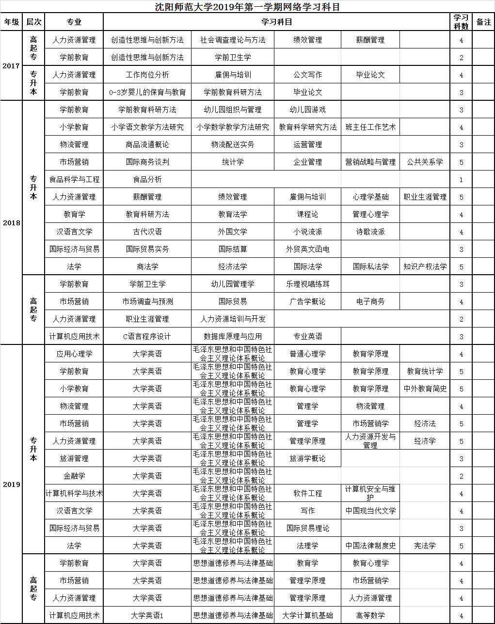 2017級學前教育、人力資源專業(yè)高起專和專升本學生;