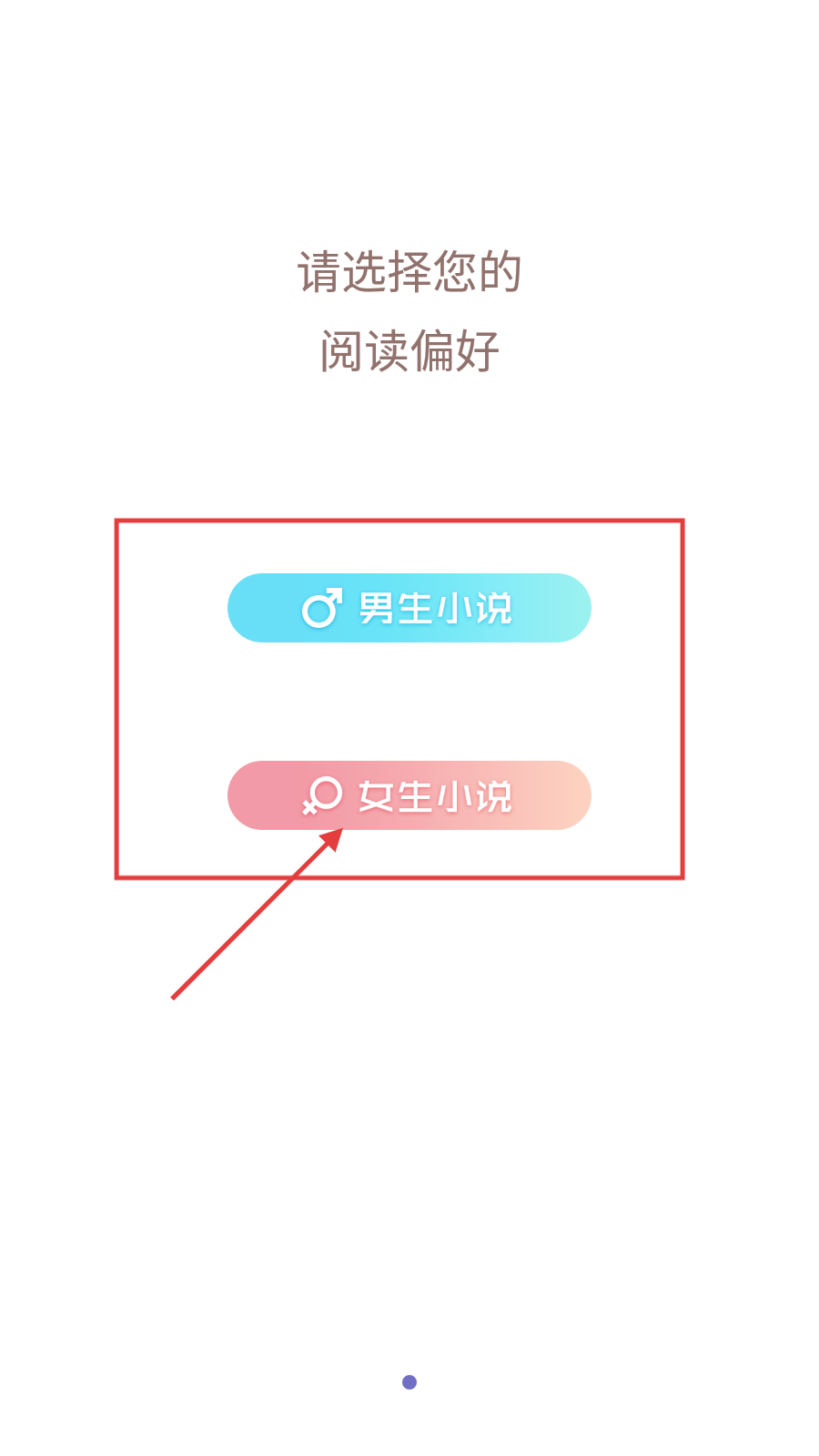 1、進(jìn)入軟件后,選擇閱讀偏好,可點(diǎn)擊【女生小說】按鈕。
