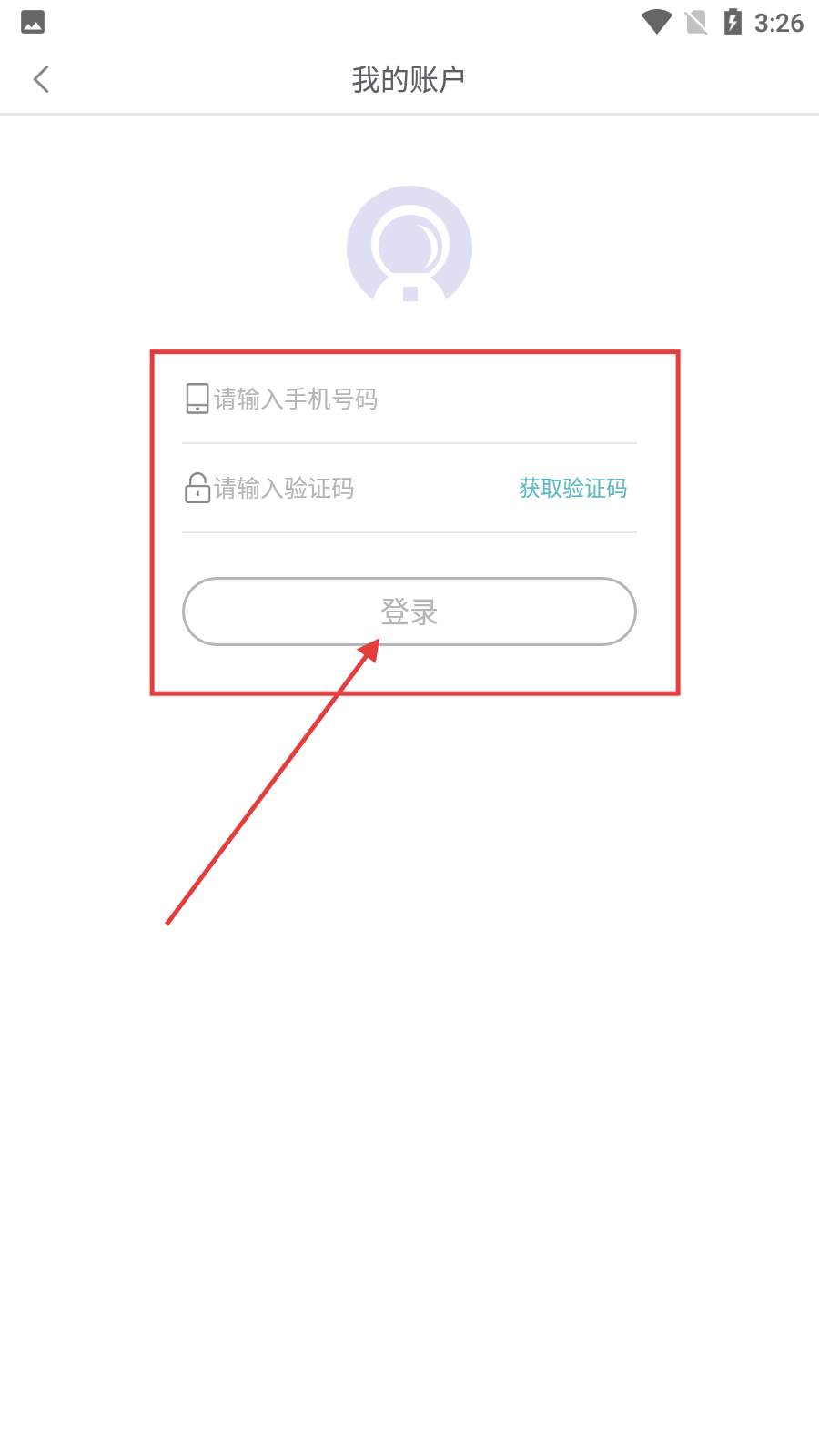 4、在【我的賬戶】頁面,輸入手機(jī)號(hào)碼、驗(yàn)證碼,然后點(diǎn)擊【登錄】按鈕。