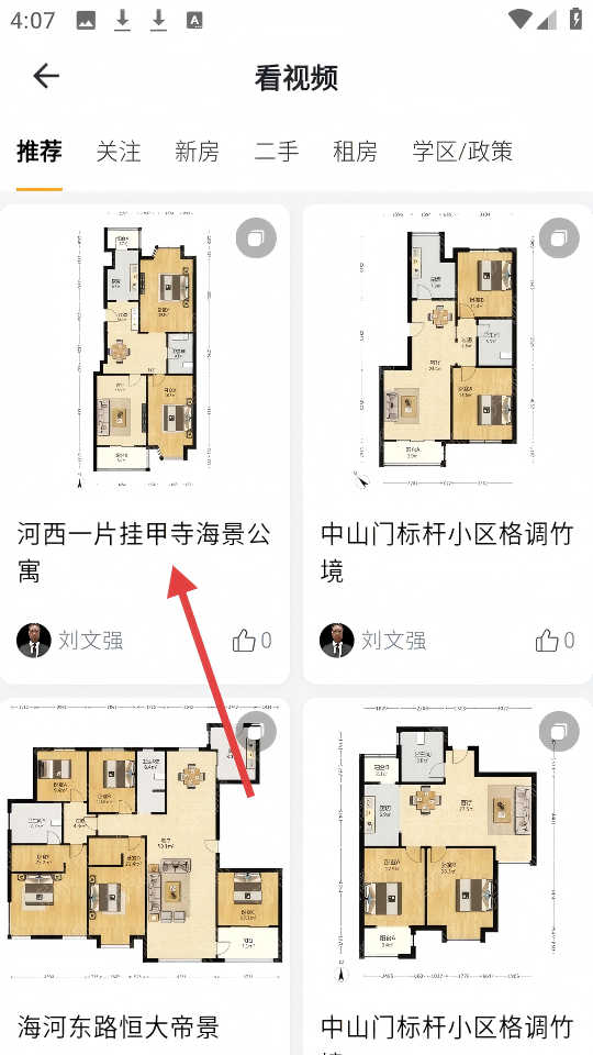 2、在看視頻頁面,點擊【河西一片掛甲寺海景公寓】,進入該內(nèi)容詳情頁。