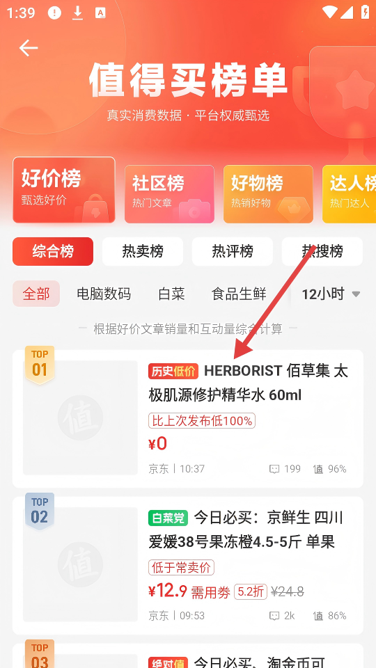 2、在【值得買(mǎi)榜單】的綜合榜中可查看【HERBORIST佰草集太極肌源修護(hù)精華水60ml】的好價(jià)排名情況。
