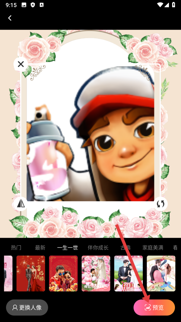 3、在圖片編輯頁面編輯完成后,點擊【預(yù)覽】,進入預(yù)覽頁面。