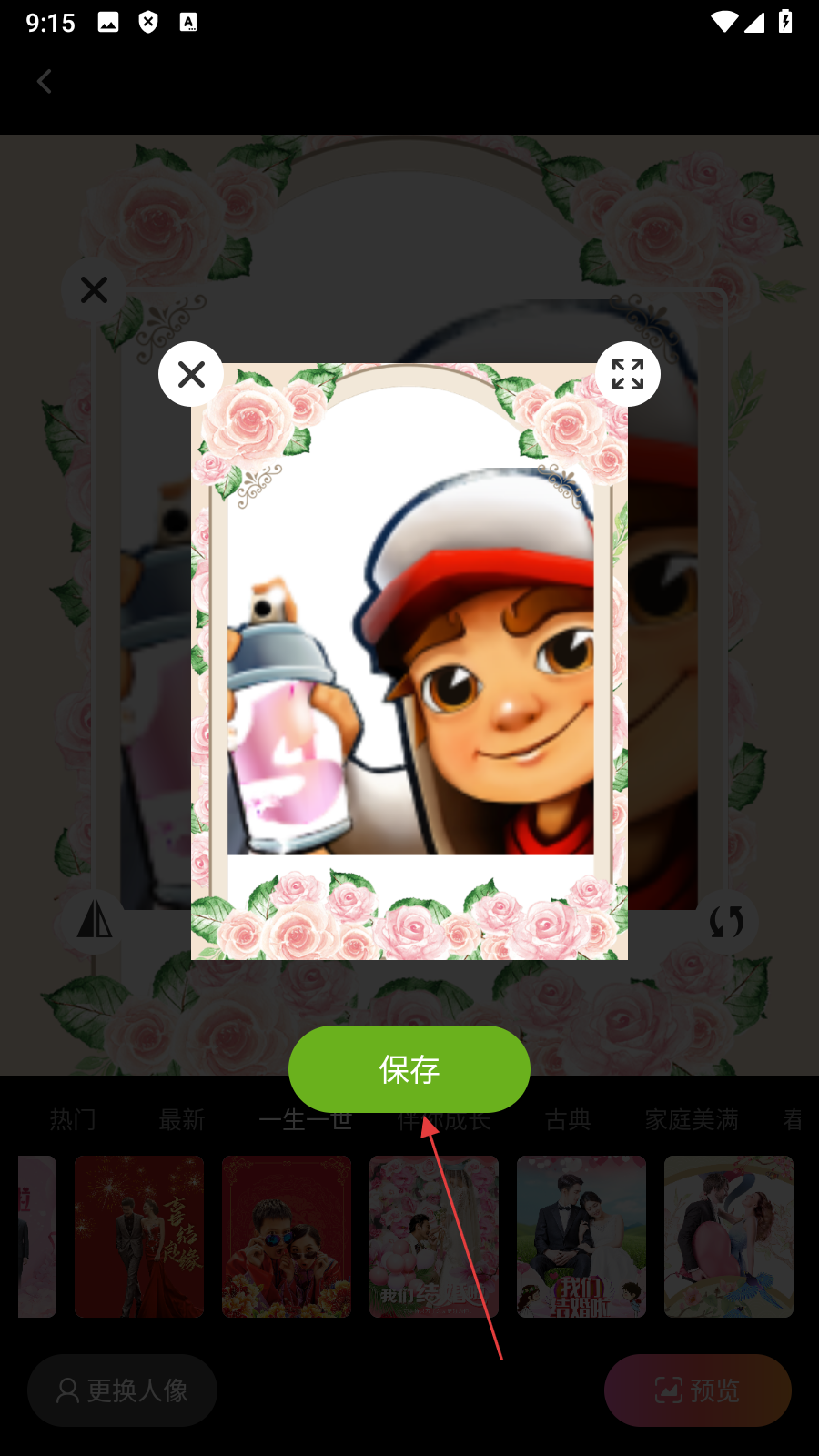 4、在預(yù)覽頁面,點擊【保存】,即可完成圖片制作保存操作。