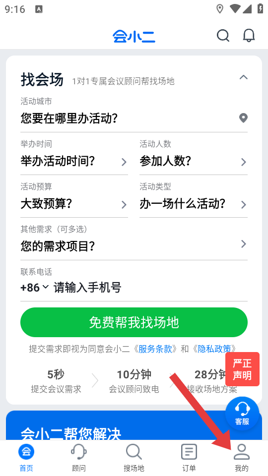 1、打開會小二APP,點(diǎn)擊底部【我的】進(jìn)入個(gè)人頁面。