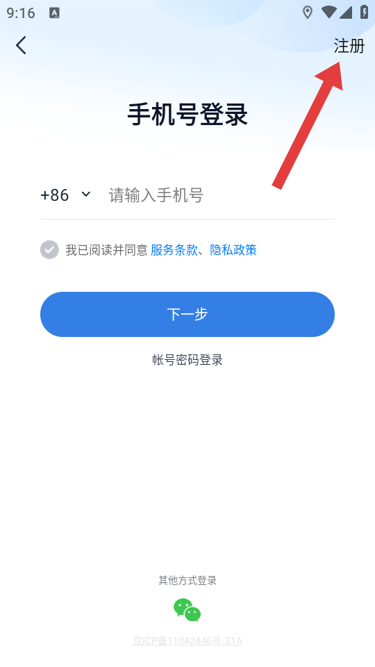 3、在登錄頁面點(diǎn)擊右上角【注冊】按鈕。