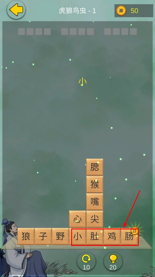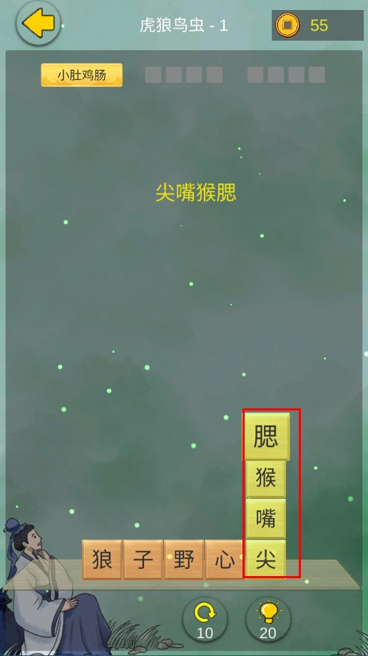 3、繼續(xù)拼接,用方塊組成新成語(如“尖嘴猴腮”),推進(jìn)關(guān)卡進(jìn)度。