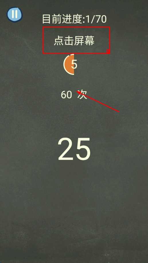 2、在關(guān)卡內(nèi),按提示【點(diǎn)擊屏幕】指定次數(shù)(如60次),推進(jìn)進(jìn)度。