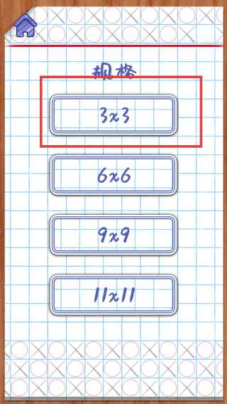 1、選【3x3】規(guī)格,開啟井字棋對戰(zhàn),熟悉基礎(chǔ)玩法,簡單易上手。