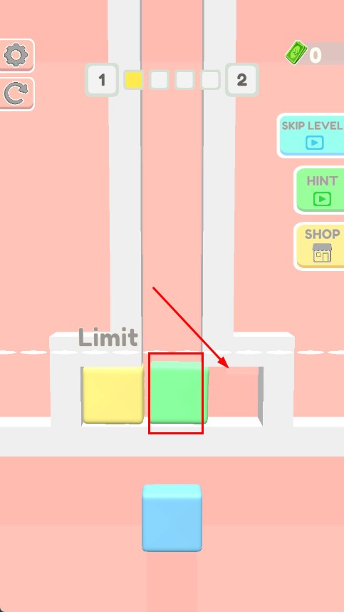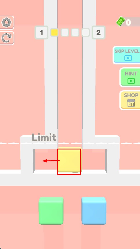 1、進(jìn)入關(guān)卡,拖動黃色方塊,填下方左側(cè)凹槽,初步占位。