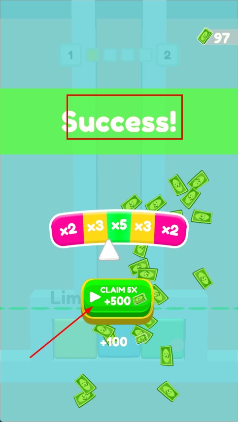 3、成功填滿后,點擊【CLAIM-5X+500】按鈕,領(lǐng)取獎勵,進(jìn)入下一關(guān)。