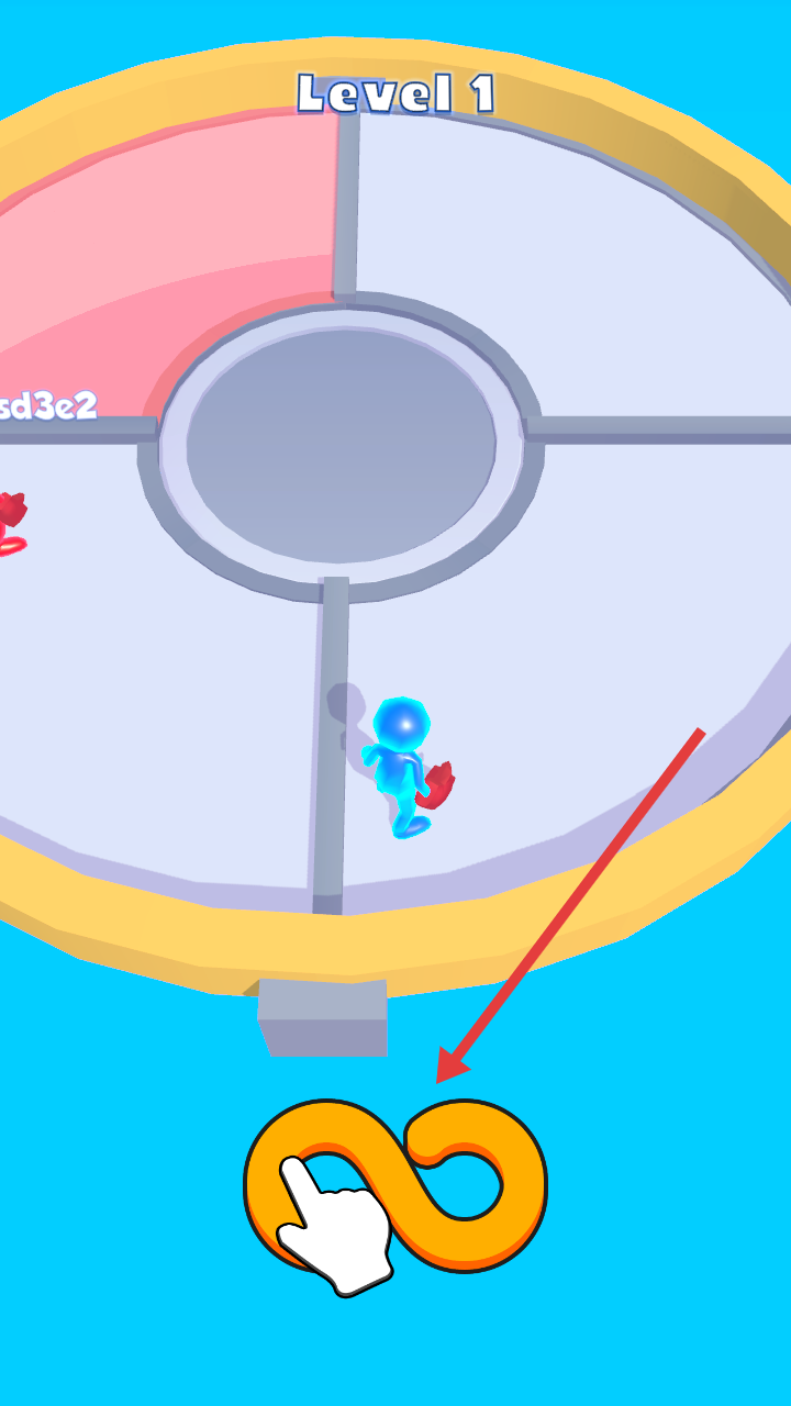 1、點(diǎn)擊橙色無限符號(hào)按鈕開始游戲,操控藍(lán)色角色在圓形賽道中收集物品,開啟關(guān)卡挑戰(zhàn)。