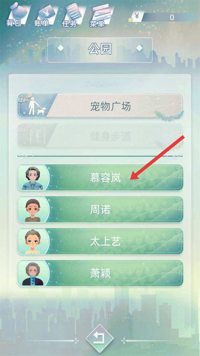 2、在【東街公園】中,選擇人物【慕容嵐】,可觸發(fā)專屬事件,開啟與她的互動(dòng),逐步深入了解角色故事。