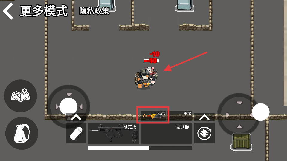 3、戰(zhàn)斗時切換【刀具】近戰(zhàn),每次攻擊造成【-10】傷害,節(jié)省彈藥近距制敵。