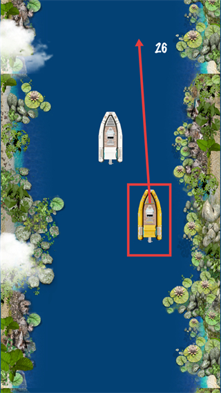 2、操控黃色船只向上移動,避開障礙,積累【26】分,逐步推進游戲。