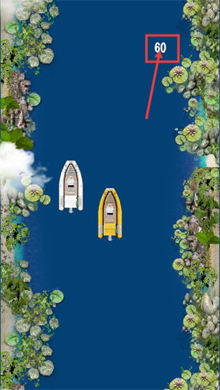 3、持續(xù)操控船只前進,將分數(shù)提升至【60】,注意躲避其他船只以獲取更高分數(shù)。