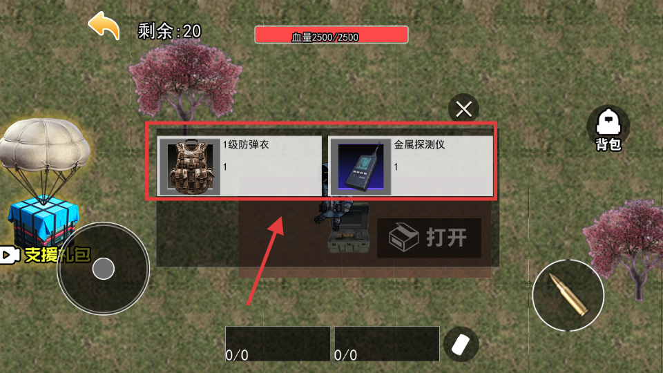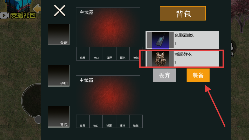 2、打開箱子優(yōu)先拾取【1級防彈衣】-【金屬探測儀】,防彈衣提升生存,探測儀助力搜資源。