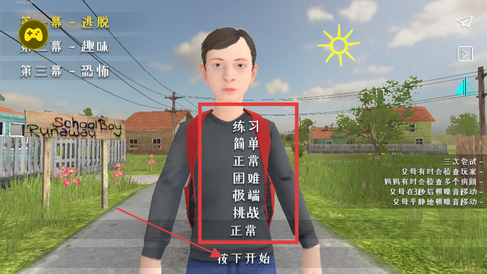 1、選擇游戲難度,點擊【按下開始】進入游戲,根據(jù)自身水平選擇合適難度,逐步提升游戲體驗。