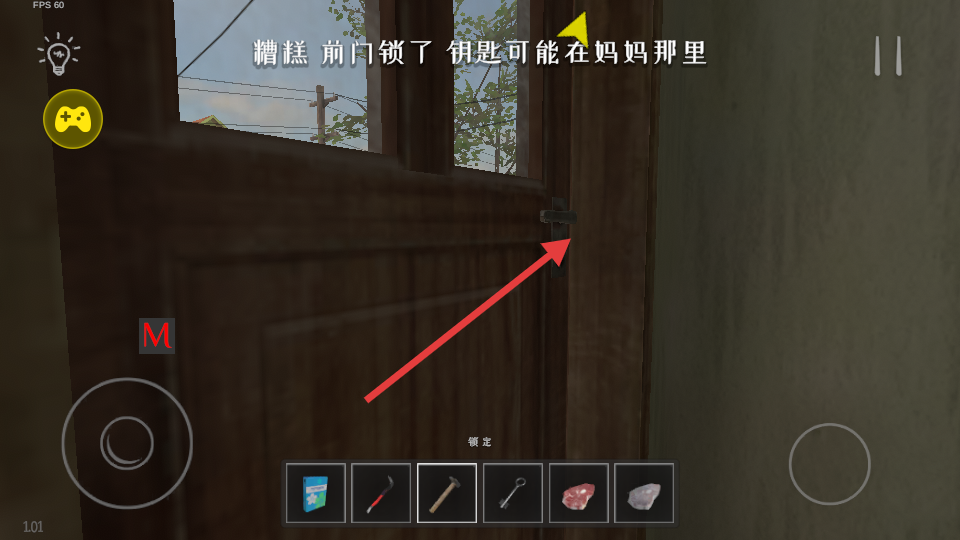 4、遇到門鎖阻礙時,根據(jù)提示尋找鑰匙或其他解鎖方式,如探索媽媽的物品獲取前門鑰匙,順利推進游戲進程。